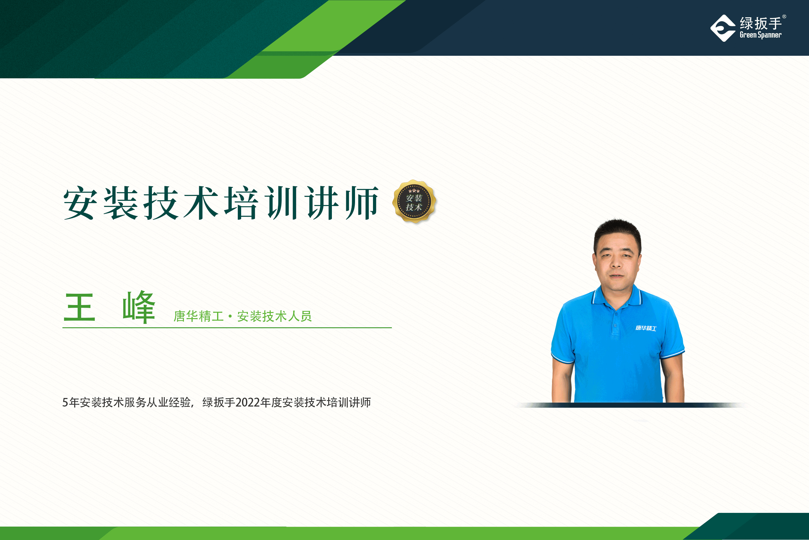 2021年起,绿扳手正式创建了自己的讲师库。其实与其说是创建,不如说是挖掘。因为讲师库的成员,均来自于服务一线,他们在各自的岗位,日复一日的服务着广大用户朋友,从优秀的个人,到杰出的带领者,我们相信,未来会有越来越多的人,成为绿扳手的培训讲师,我们将和他们一起,把绿扳手工艺、服务传递给更多同行者。