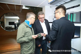 2018年9月25日,德国伏尔康公司全球营销总监Patrick先生 及伏尔康中国公司总经理毛南敏先生一行来访绿扳手西安总部。在展厅了解绿扳手产品展示及营销服务流 程。